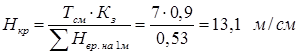 ΣНвр. на 1м = 0,48чел.см/м – затраты времени на крепление 1м выработки;