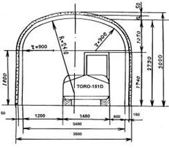 Рис 4. Сечение транспортного уклона и разрезного орта