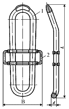 1 - штроп; 2 - ручка; L - длина; B -ширина; d — диаметр поперечного сечения.
