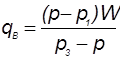 где qB и qk – объемы добавляемой воды и концентрированной кислоты в м3; W – объем солянокислотного раствора 8%-ной концентрации; p – плотность раствора заданной концентрации; p1 и p2 – плотность приготовленного раствора соответственно пониженной и повышенной концентрации; p3 плотность концентрированной соляной кислоты.