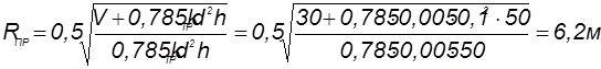 где V= 30 м3 – количество продавленного в пласт кислотного раствора; kТР – коэффициент трещиноватости пород; d – 100 мм – диаметр забоя скважины; h = 50 м – эффективная мощность пласта.