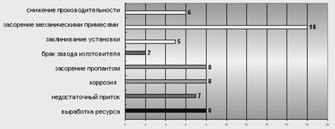 Неэффективность СКО объясняется отсутствием опыта применения данной технологии в условиях наших месторождений. Проводились обработки установок, которые по результатам расследований признавались полностью неработоспособными по причине полного износа рабочих органов, заводского брака, слома вала и т.д.