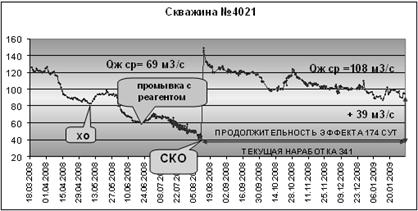 Рассмотрим эффективность технологии на примере восстановления производительности установки на СКВ 4021 (график 2)