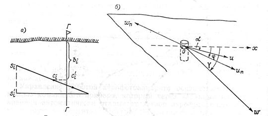 где ω — скорость потока воздуха на высоте 1 м от поверхности воды; γ — угол, составленный вектором ω и направлением движения поплавка ох (рис. 6 б).