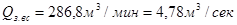 QЗ.ВС = 1,3* QЗ = 1,3*220,6 = 286,8 м3/мин = 4,78м3/сек