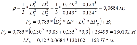 В = 0,5*4790*9,81 = 23495 Н – вес вращающихся деталей и узлов турбобура.