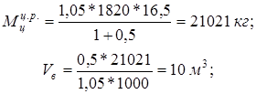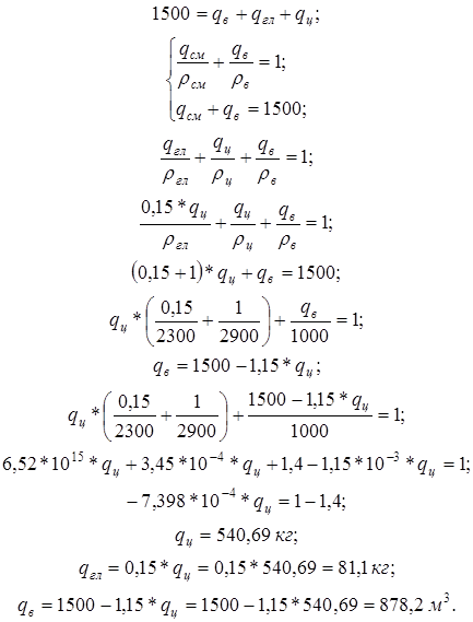 Определим объемное содержание глины, цемента и воды в 1 м3.