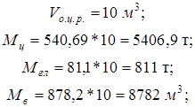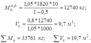 Определим общую массу цемента, глины и воды потребного для приготовления облегченного цементного раствора:
