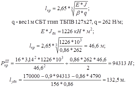 где q0 – вес 1 м СБТ диаметром 127 мм, q0 = 262 н/м;