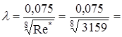 - определим коэффициент гидравлического сопротивления в ЛБТ (l):