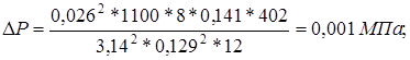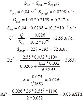 - Определим перепад давления в кольцевом пространстве между ЛБТ и кондуктором, где L = Lк = 550 м; Dc = Dвнк = 0,2267 м – внутренний диаметр кондуктора;