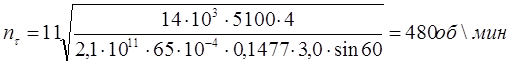 С =5100 м\с – скорость звука в материале вала забойного двигателя;