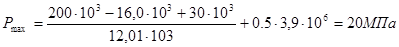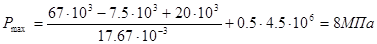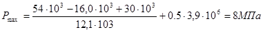 где: Рmax - максимальная величина давления на выкиде буровых насосов, мПа;