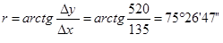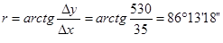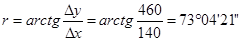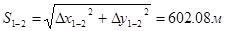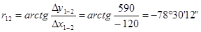 Определим дирекционный угол и длину линии для направления 1 – 2.