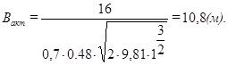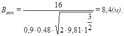 Чтобы определить пропускную способность плотины, рассчитаем ширину водосливного фронта: