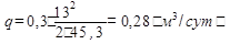 где: Кф - коэффициент фильтрации тела плотины. Кф = 0,3 м/сут.