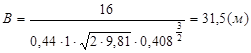 1) Начнём расчёт водопропускной части водослива с определения ширины водопропускного тракта на пропуск расхода, который вошёл в оголовок водослива.