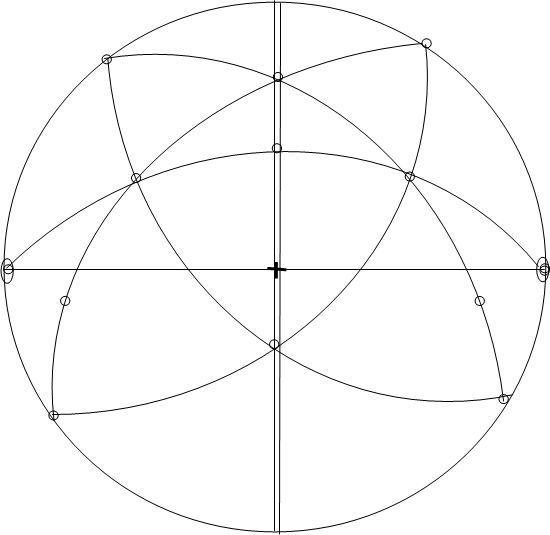 Рис.4 Стереографическая проекция кристалла ортоклаза