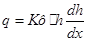 Подставив полученное выражение гидравлического уклона в выражение закона Дарси (21), получим для безнапорных вод