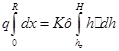 Для расчета притока воды в дрену Q выбираем на расстоянии х от стенки дрены сечение с напором к, которое находится в интервале от нуля до R.