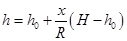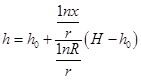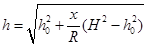 Решаем равенство относительно h и получаем уравнение кривой депрессии