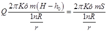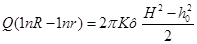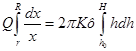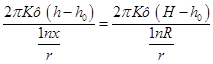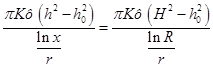 Для расчета кривой депрессии возвратимся к (55) и сменим пределы интегрирования: по X от r до х,а по Y от hо до h: