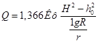 В таком виде использовать выражение (2) не совсем удобно, так как в нем присутствует натуральный логарифм. Подставим вместо него десятичный (1nх = 2,30 lgх), а вместо л его значение и получим более удобное выражение для расчета притока безнапорных вод в скважину: