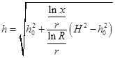 Разделяя переменные и интегрируя по X от r до Н, а по Y от hо до Н, получим