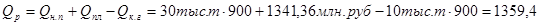 План добычи составляет 1490 тыс. т, расход угля на собственные нужды 5 тыс. т, цена 1 тонны угля при плановом качестве составляет 900 руб./тонну. Стоимость услуг капитального строительства составляет 200 млн. руб.