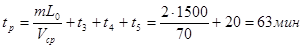 где n2 – количество одновременно опрокидываемых вагонеток; tc – период одного опрокидывания (по данным хронометражных наблюдений), с.