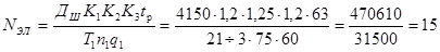 где ДШ – добыча по шахте, т; K1 – коэффициент, учитывающий перевозку породы, материалов, K1 = 1,2–1,25; K2 – коэффициент, учитывающий перевозку сверхплановой добычи, K2 = 1 -1,25; K3 – коэффициент, учитывающий перевозку людей, K3 = 1,2; tР – продолжительность одного рейса, мин.