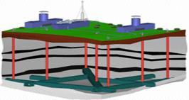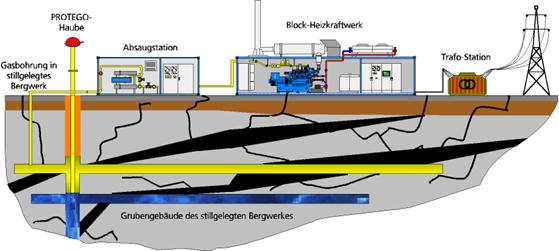 1) Пласт 2) Контейнеры с насосами 3) Дегазационная скважина 4) Поверхность |