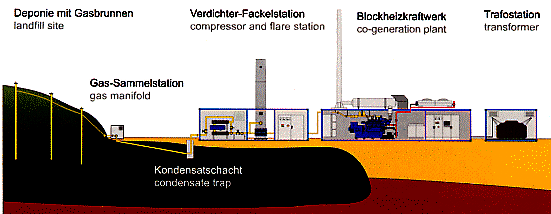 Для эффективного использования каптируемого метана по результатам анализа мирового и отечественного опыта предлагается блочная установка утилизации метана дает возможность не только сжигать метан в специальной камере тем самым, предотвращая выделения в атмосферу вредного парникового газа, но и для выработки электроэнергии и дополнительно для производства тепловой энергии при использовании газа в качестве топлива. Для этого газ подается через систему трубопроводов на электрогенераторный агрегат.