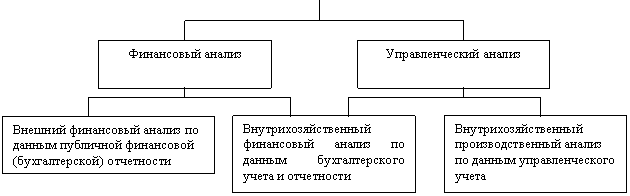 Финансовый анализ является частью общего, полного анализа хозяйственной деятельности, который состоит из двух тесно взаимосвязанных разделов: финансового анализа и производственного управленческого анализа (рис. 1).