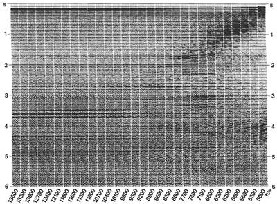 Следует быть осторожнее при выборе постоянных скоростей, используемых в вышеописанном методе CVS. Кроме того, что в разрезе скорости изменяются в широких пределах, следует учитывать два обстоятельства: 1) диапазон скоростей, необходимых для суммирования данных и 2) шаг между пробными скоростями суммирования. При выборе диапазона скоростей нужно обратить особое внимание на тот факт, что сигналы от наклонных отражающих поверхностей и полезные сигналы, смещенные от плоскости наблюдения, могут иметь аномально высокие скорости суммирования. При выборе шага между постоянными скоростями следует помнить, что основой для оценки скорости является приращение, а не скорость. Следовательно, предпочтительнее делать развертки приращений равных DtNMO, нежели равных vNMO. Это предотвращает избыточное квантование высокоскоростных сигналов и недостаточное квантование низкоскоростных сигналов. Хороший способ выбора D(DtNMO) – чтобы разность приращения между соседними пробными скоростями при максимальном суммарном выносе составляла приблизительно 1/3 видимого периода данных. Неглубокие данные характеризуются короткими максимальными выносами из-за обнуления, а глубинные данные имеют большой видимый период. Следовательно, можно уменьшить количество пробных скоростей суммирования.