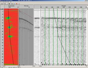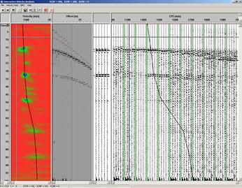 При запуске потока, содержащего модуль Interactive Velocity Analysis, открывается окно, подобное показанному на рисунке 11.
