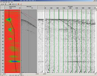 Рис. 11. Пикирование скоростей с целью подавления кратных волн.