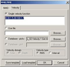 В возможности суммирования также входит проведение суммирования с заданными интервалами постоянных скоростей. Выбор соответствующих интервалов и скоростей может быть произведён после визуального анализа картины спектра скоростей. Зададим интервалы постоянных скоростей – 1,5 км/с для времён 0-30 мс.;1,7 км/с для времён 30-100 мс. (Рис. 15).
