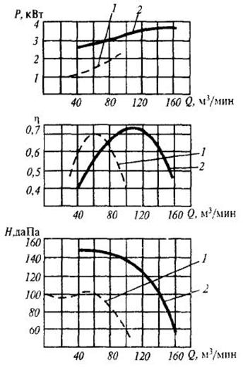Всасывающий вентилятор располагается не ближе 720 метров от забоя. Длина всасывающего трубопровода 700 метров. Депрессия всасывающего трубопровода 2057 Па. Необходимая производительность вентилятора 259,2 м3/мин. Поэтому принимаем осевой вентилятор с электроприводом ВМ-8М.