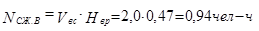 Nзар = Vбвр*Нвр/10 = 87*0,528/10 = 4,59 чел-ч