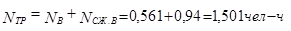 Nобщ = Nбур + Nзар + Nр + Nв + Nтр = 11,47+4,59+1,55+0,74+1,501 = 19,85чел-ч