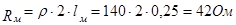 Длину магистрального провода (с учётом запаса на катушке) принимаем равной 0,15 км. Сопротивление магистрального провода мы можем найти по следующей формуле: