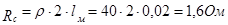 Длину соединительных проводов принимаем равной 20 метров. Сопротивление соединительного провода мы можем найти по следующей формуле: