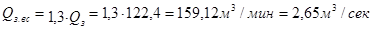 QЗ.ВС = 1,3* QЗ = 1,3*1,54 = 2,002 м3/сек = 120,12 м3/мин