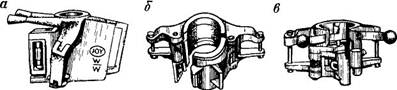 Бурильные трубы с помощью элеватора и лебедки поднимают над полом вышки. Элеваторы для подъема бурильных, обсадных и насосно-компрессорных труб (НКТ) представлены на рис. 1.10, а, б, в соответственно. Элеватор представляет собой устройство типа хомута, которое защелкивается на трубе, что позволяет поднимать бурильную колонну из скважины.