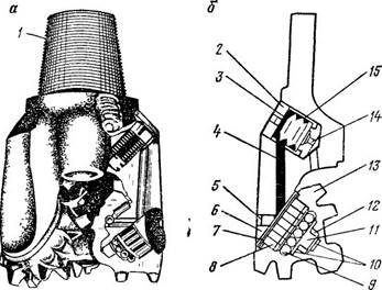 Рис. 4.3 Элементы долота со вставками из карбида вольфрама: