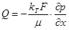 Следовательно, расход жидкости через площадь фильтрации F породы будет равен