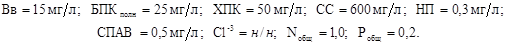 Вв = 4 БПКполн = 2,7 ХПК=10 Nоб=0,4 Pоб=0,032 |