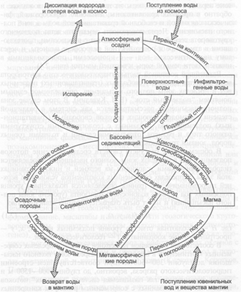 В качестве основных видов единой геологической формы движения материи применительно к движению собственно подземных вод обычно рассматриваются два основных вида круговорота воды в земной коре − гидрогеологический и геологический (рис. 4).
