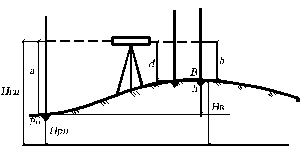 На этой стоянке вычисляем также горизонт инструмента Hги = Нpп + a и определяем высоту промежуточной точки Д: